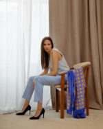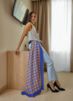 The designer silk square scarf with unique signature textile pattern SUNNY by Anni Teriani. High quality and unique textile colour pattern. It can be used as a shawl, sheila, head wraps. A perfect gift idea for women for any occasion.